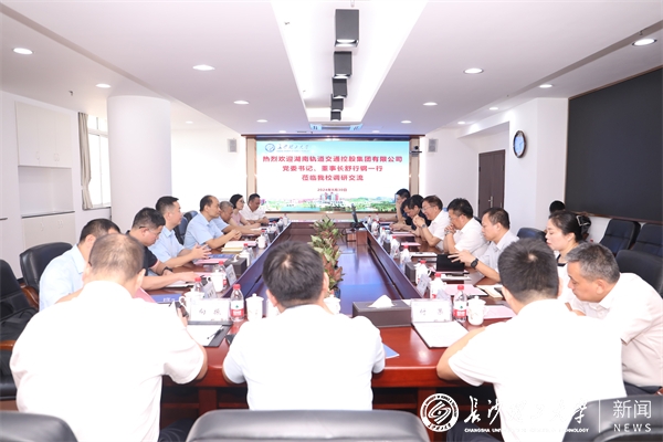 8月30日下午,湖南省轨道交通集团党委书记、董事长舒行钢一行来到开云官网,就轨道交通相关专业人才培养、轨道技术研发、产教融合等情况开展调研。开云官网党委书记付宏渊与舒行钢一行进行了工作会谈。副校长张军辉陪同调研并主持座谈会。