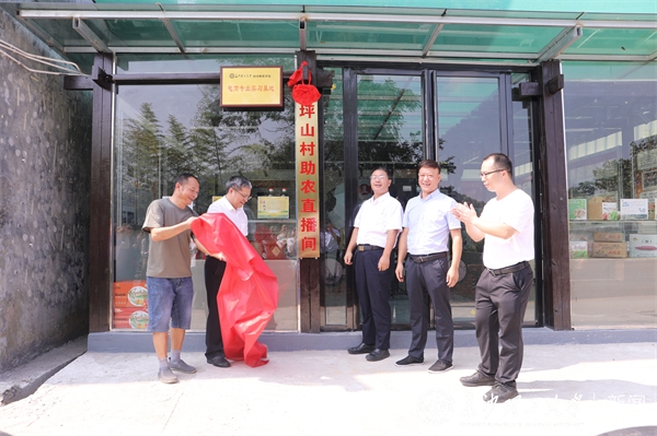 曹一家一行首先来到坪山村助农直播间,为校地共建助农直播间揭牌。走进产品展厅和直播间,曹一家详细了解了直播间的建设进展、运营模式,询问了直播间粉丝量及产品销售、物流配送等情况,对工作队积极探索“互联网+农业”新模式、拓展农产品销售渠道的做法表示赞赏。