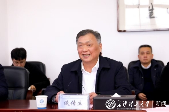 谈传生对刘玮一行的到来表示热烈欢迎。他简要介绍了学校的办学历史、特色学科、科研成果等情况。他希望双方聚焦国家战略和产业发展,加强校企合作,构建融合多学科的研究平台,共同探索人才培养新模式,实现合作共赢。