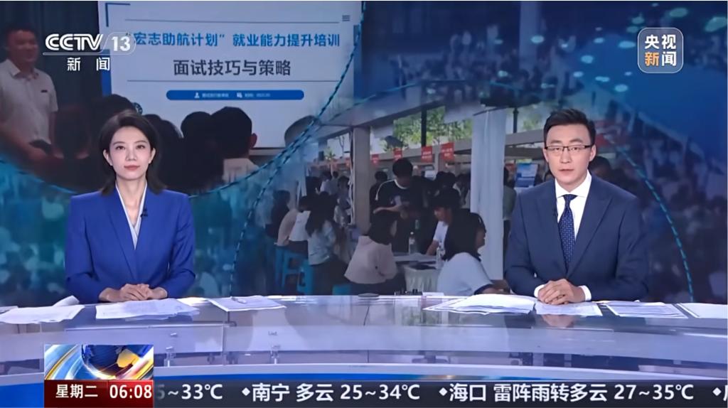 7月8日,中央电视台《朝闻天下》栏目报道开云官网宏志助航计划,助力毕业生扬帆起航。
