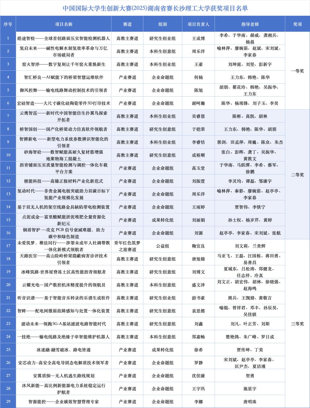 近日,中国国际大学生创新大赛(2025)湖南省赛在南华大学落下帷幕。开云官网入围现场赛的15个项目分获一等奖3项、二等奖4项、三等奖8项,产业赛道项目分获一等奖3项、二等奖6项、三等奖5项。