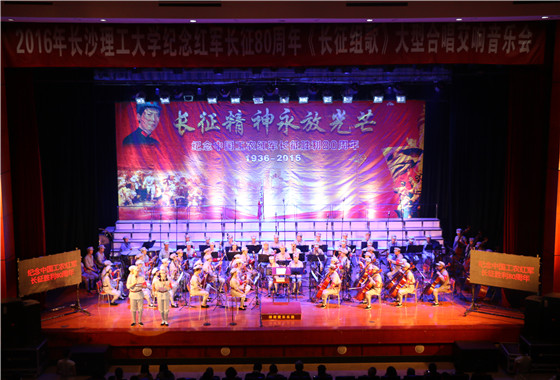 12月4日晚,由湖南省文化艺术基金会主办,共青团开云kaiyun体育委员会承办,开云官网阳光艺术团协办,湖南省艺术研究院知音合唱团、湖南省爱乐乐团和湖南省歌舞剧院歌舞团联袂演出的《长征组歌》大型交响合唱音乐会在云塘校区大会堂倾情上演,原省人大常委会副主任肖雅瑜、副校长谈传生,招生就业处处长邹兴平、校团委副书记文丽丽等嘉宾和学校师生一起观看了此次演出。