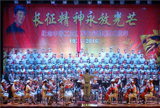 《长征组歌》由作曲家晨耕、生茂、唐诃、遇秋谱曲,结合肖华将军回忆长征经历的12首诗作之中的10首成词,分别是《告别》、《突破封锁线》、《遵义会议放光辉》、《四渡赤水出奇兵》、《飞越大渡河》、《过雪山草地》、《到吴起镇》、《祝捷》、《报喜》和《大会师》。音乐会由著名指挥家、国家一级指挥周祥辉与优秀青年指挥家周晓枫联袂执棒指挥,省艺术研究院知音合唱团与省爱乐交响乐团强强联手,并特邀湖南省歌舞剧院歌剧团优秀青年歌唱演员担任领唱。来自三大团体的艺术家们以合唱、独唱、朗诵等多种形式,重现了工农红军长征途中10个经典历史场景,高度凝练了红军长征的艰难历程与伟大意义,讴歌了中国工农红军在党中央毛主席的领导下,不屈不挠、无私无畏的革命精神和英勇奋战的英雄气概。