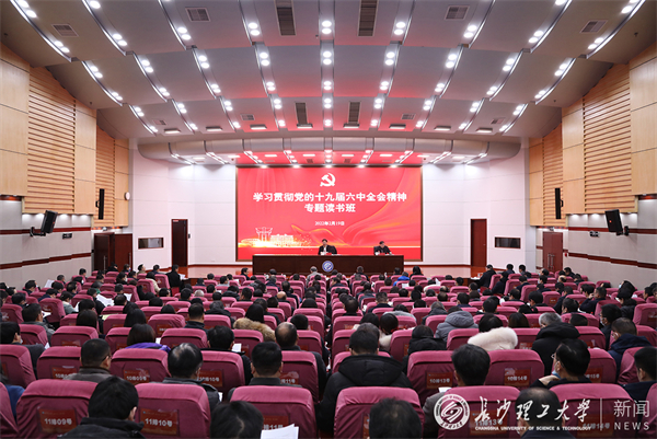 新学期第一天,开云官网学习贯彻党的十九届六中全会精神专题读书班在图书馆报告厅开班。校党委书记付宏渊作辅导报告,为学员们讲授“新春第一课”。全体在校校领导、全校副处级及以上干部参加。读书班由校党委副书记刘建民主持。