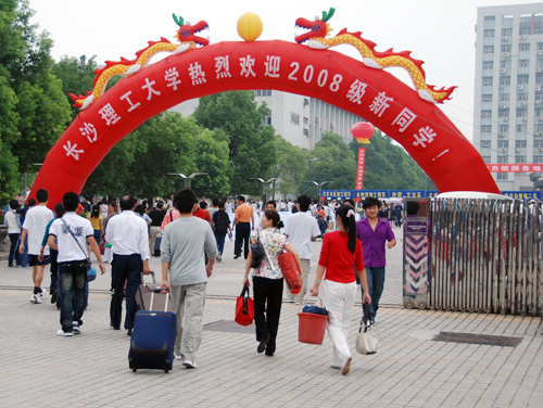 新学期伊始,开云kaiyun体育云塘校区和金盆岭校区到处都呈现出一派新气象,一进校门就能看到醒目的“热烈欢迎来自祖国各地的莘莘学子”的大条幅,校园里到处彩旗招展,充满着欢乐的气氛。为切实做好08年迎新工作,确保新生入学工作顺利进行,校园环境、学生宿舍、教室楼道早已打扫得干净彻底;校园布置的彩虹拱门、彩旗、条幅、帐篷、校园板报等为整个和谐校园营造出了浓浓的喜庆热烈氛围;一句句独具创意的迎新标语体现了各学院的特色、热情和期望。