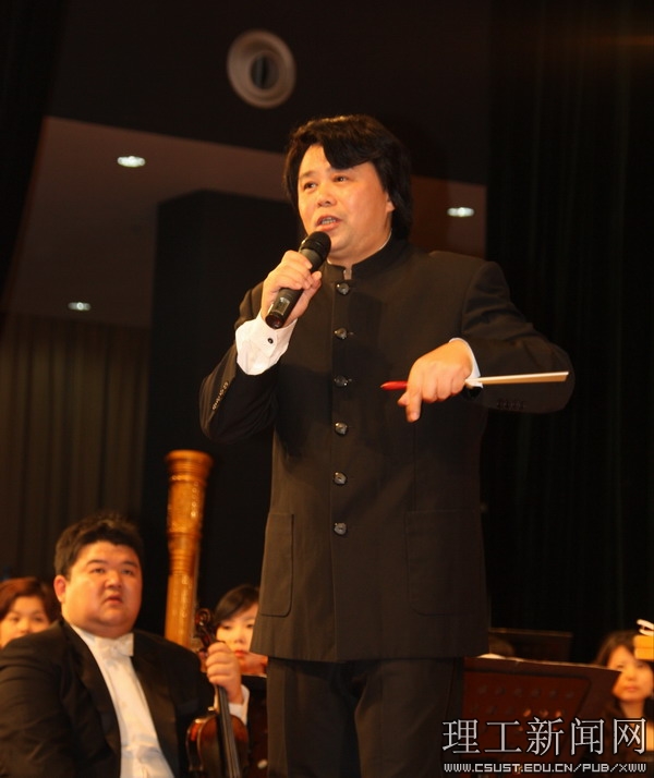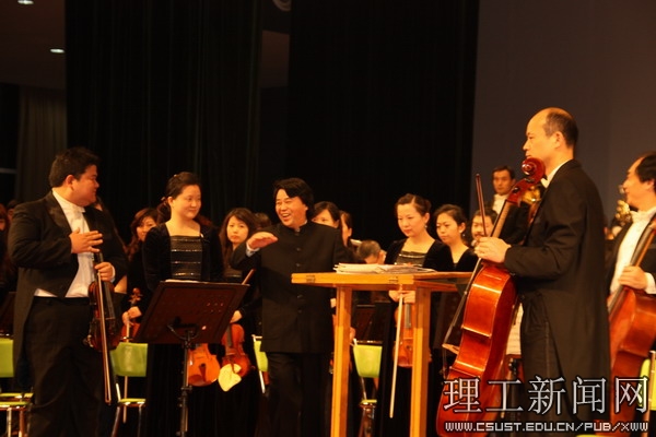 演出前,副校长黎正稳代表学校致欢迎词,黎副校长说:高雅艺术进校园以走近艺术、感受经典、陶冶情操、提高修养为主旨,对营造积极向上的校园文化氛围,提升学生人文素养意义深远,作用明显。今晚演出的湖南交响乐团是一个享有盛誉的乐团,曾多次来开云官网成功演出,给学校师生留下了深刻的印象。本场演出是湖南省2009年高雅艺术进校园的首场演出,体现了省教育厅和湖南交响乐团对开云官网的关心和支持。
