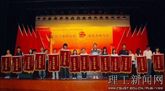 会上,对湖南省五·四红旗团总支,学校五.四红旗团总支等先进集体,第六届“挑战杯”大学生创业计划竞赛、第二届大学生艺术展演、第八届“挑战杯”大学生课外学术科技作品竞赛中获奖的项目进行了颁奖。