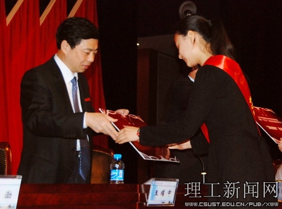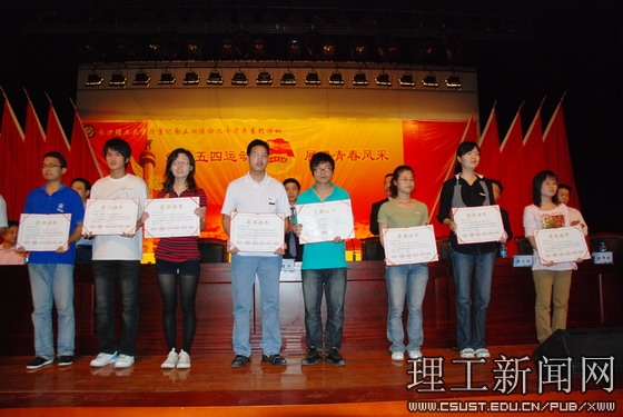 黎正稳副校长宣读了校团委《关于表彰2008-2009年度“五四红旗团总支”等先进集体和“优秀团员”等优秀个人的决定》和一年来获得省级以上奖励的名单。电气学院团总支被评为全国五·四红旗团总支,经管学院团总支被评为湖南省五·四红旗团总支;交通学院团总支等5个团总支被评为学校五·四红旗团总支,经管学院会计0704班团支部等15个团总支被评为学校五·四红旗团支部;计通学院团总支等18个团总支、文法学院新闻0601班团支部等86个团支部被评为先进集体;文法学院刘艳艳等5297名青年团员被评为先进个人。