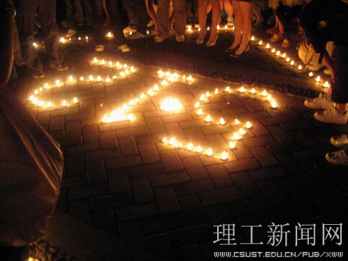 5月12日晚,一批学生自发组织了周年纪念活动。几十个同学坐在图书馆前国旗下的台阶上点燃蜡烛,唱《祈祷》、《感恩的心》。在云影湖桥上和综合楼广场两处地方,同学们放飞孔明灯许愿,纪念汶川,祈福祖国。有位同学在桥上给大家免费发放了十几盏孔明灯,没有留下姓名,只是希望大家在放飞孔明灯的时候别忘了祈愿,祝福远方的同胞,愿逝者长眠,生者坚强。路过的同学们聚集在一起,三五个人一组,静静地燃放孔明灯,孔明灯悠悠飞上天空,怀着无限思念,带着真挚祝福,祝福汶川的明天更加美好!祝愿我们伟大祖国的明天更加辉煌!
