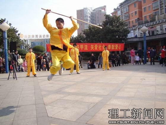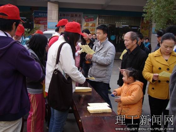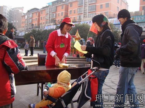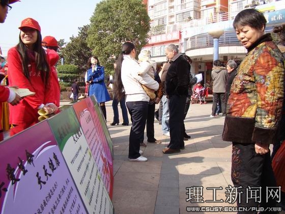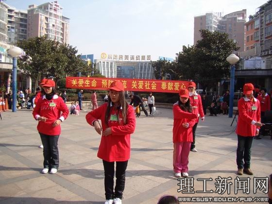 校学生会志愿团一部分志愿者走进新星社区,开展关爱生命、预防甲流宣传、文艺演出等志愿服务活动。在社区工作人员的积极准备和配合下,志愿者着统一服饰,佩戴校徽,开始了精彩的文艺节目表演,吸引了很多社区居民驻足观看:威武强壮的男子武术队的剑术棍棒拳术赢得阵阵喝彩;湘妹子柔情歌唱陶醉全场;手语操暖遍全场;互动环节,拉近了社区居民和志愿者的距离,欢笑充满了整个新星小区。通过文艺表演,志愿者服务的影响在社区迅速传开。据不完全统计,有2000多人来到了志愿者服务地。志愿者与社区请来的医务人员随即开展关爱生命、预防甲流的宣传和咨询活动,向社区居民发放了包含如何预防甲流的宣传资料1000多份,医务人员和志愿者接受咨询者500多人次。
