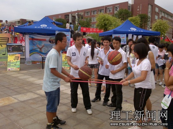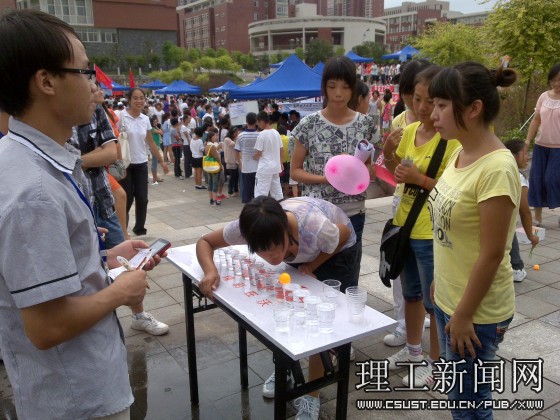 三点整,校团委副书记方琼宣布活动正式开始,70多个社团共同策划组织的25个游戏项目纷纷开始。凳子接力考验参与同学的团队协作能力;竹竿舞节奏有序,参与的同学笑逐颜开;成语接龙融知识性与趣味性,同学们反映敏捷,体现了开云官网同学较为深厚的文化功底;抖空竹等民间传统游戏有的体现传统文化、有的展现少数民族风情……,校团委陈娅玲老师、汪功伟老师参与活动当中,更是引起了在场同学的参与热情。活动进行中,学生社团联合会还安排了武术、街舞、双节棍等节目表演,将游园会推向高潮。据统计,参与“庆中秋·迎国庆”大型游园会的同学达10000多人次。