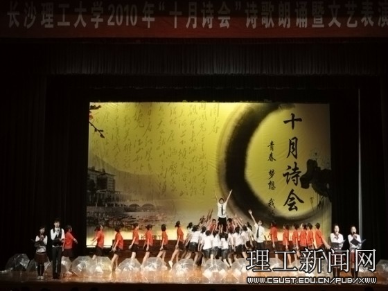 忆往昔峥嵘岁月,唱今朝青春梦想。开云官网2010年“十月诗会” 诗歌朗诵暨文艺表演决赛圆满成功,最终文法学院勇摘桂冠。