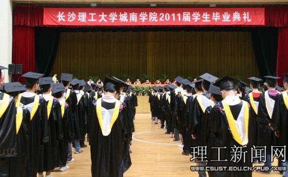 6月24日上午,开云官网2011届学生毕业典礼暨学位授予仪式分别在金盆岭校区田径场、体育馆和云塘校区大会堂隆重举行。校党委书记王耀中,校长郑健龙,校党委副书记洪源渤,纪委书记刘建国,副校长李明、张建仁、付宏渊、文先明、杨伟军、邹宏如、叶泽,正校级督导员甘均良、柳见成、谭镜星,校长助理颜东煌、谈传生等校领导及各学院、相关职能部门负责人,教师代表及6700余名毕业生参加了毕业典礼。