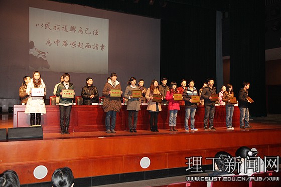 会议在国歌声中拉开帷幕,机关党委常务副书记兼党政办副主任庄创奇代表学校宣读了2011年校级示范(先进)班集体、优良学风寝室和学习型个人的表彰决定,并勉励受表彰的集体和个人发挥模范带头作用,带动全校学风建设,努力争取更大成绩。之后,主席台领导为获奖代表颁奖。