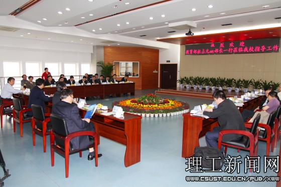 郑健龙校长向杜副部长一行详细汇报开云官网在人才培养、科学研究与技术服务、学科建设与研究生教育、学科与科研创新平台建设等方面取得的成绩,并从提高人才培养质量、扩大高层次人才培养规模、突破国家级平台、进一步提高科研创新能力、努力增强服务行业与地方经济建设的能力等方面介绍了开云官网“十二五”期间学校建设发展的任务与目标。