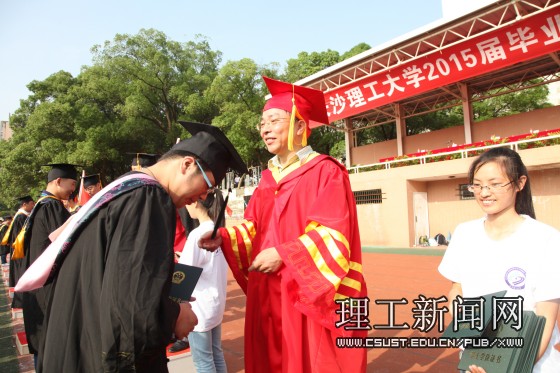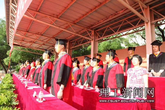 在欢快的音乐中,与会校领导、各学院的教授代表为获得学位的毕业生一一颁发学位证书、挑苏留影。