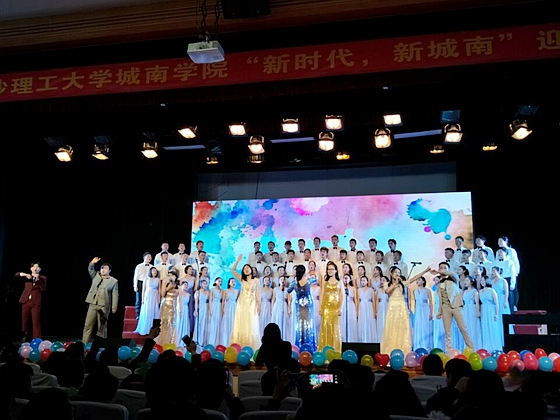 1月3日晚,城南学院“新时代 新城南”2017级迎新晚会在五教大礼堂拉开帷幕。院党委书记袁剑波、党委副书记王明彦、副院长向永生,校党委宣传部副部长成华、化学学院党委副书记汪功伟以及相关师生共千余人观看了晚会。