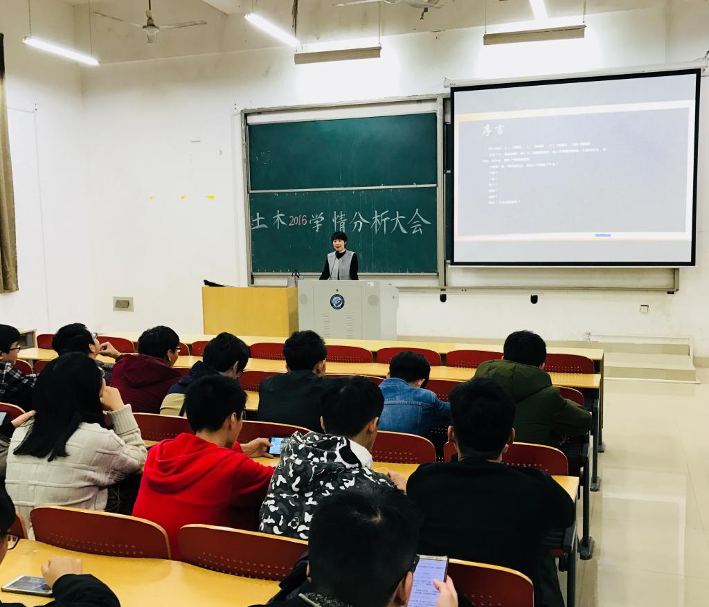 为总结上学期学习情况,激发学习动力,帮助同学们树立明确的学习目标、养成良好的生活习惯,3月23日晚,土木学院在工科一号楼A106召开2016级学情分析大会。会议由16级辅导员贺佐杰主持召开,16级全体学生参加。