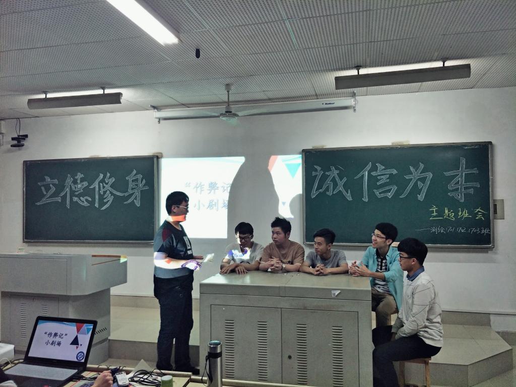 为帮助学生形成良好的考风、考纪,自觉维护考试秩序,增强诚信意识,4月11日晚,交通学院17级测绘专业学生于综教C606召开了以“立德修身·诚信为本”为主题的班会活动,年级辅导员肖敏强参加。
