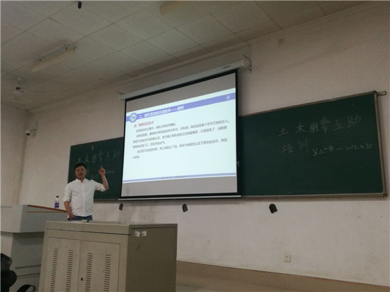 4月11日下午,土木学院“朋辈互助员心理知识培训讲座”在综教a105举行。本次培训分三场进行,分别由化学学院心理辅导员江洁、交通学院心理辅导员陶传谱、土木学院心理辅导员汪伦主讲,学院各班心理委员、寝室信息员、院心理部干事及校朋辈的工作人员共计150余人参加。
