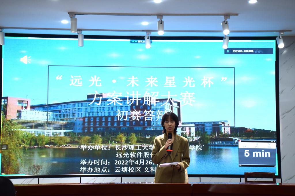 4月26日下午,经管学院2022年“远光·未来星光杯”方案讲解大赛初赛在云塘校区文科楼D207教室举行。此次比赛由经管学院及远光软件股份有限公司共同举办。经管学院袁江云、扶缚龙、曾小青三位老师担任校内评委,远光软件股份有限公司业务专家陈红霞、姜敏、李谦谦通过腾讯会议参与比赛并担任校外评委,经管学院主持队吴雨涵担任主持人。
