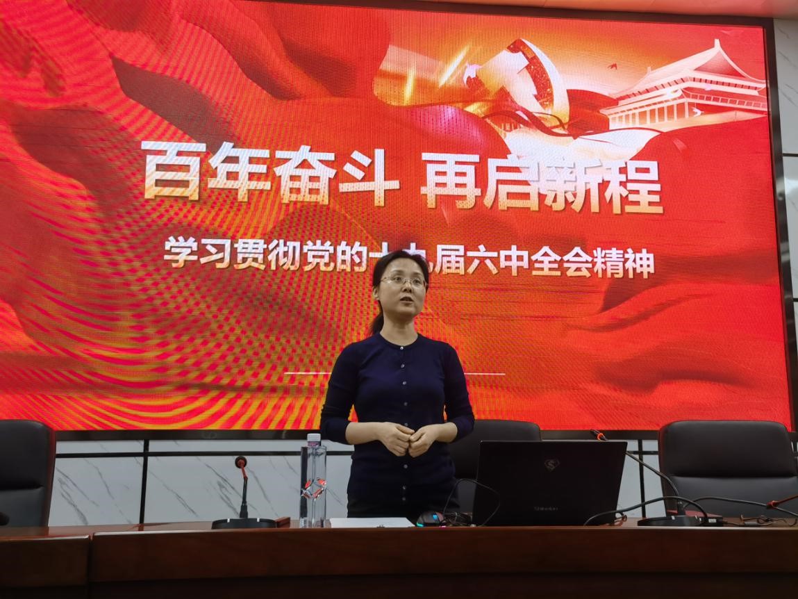 鲁芳全面解读党的十九届六中全会,先从整体上介绍了六中全会的具体内容,传达了会议精神,再从“全局性”“历史性”等两个方面,分析了全会的重大意义。然后挑出《中共中央关于党的百年奋斗重要内容和历史经验的决议》的主要内容和科学内涵进行具体分析,强调《决议》总结了党的百年奋斗重大成就和历史经验,对党和国家在新时代的发展起到了铺路搭桥的作用。最后鲁芳强调,青年人务必牢记“一个根本问题”,为实现第二个百年奋斗目标不懈奋斗。