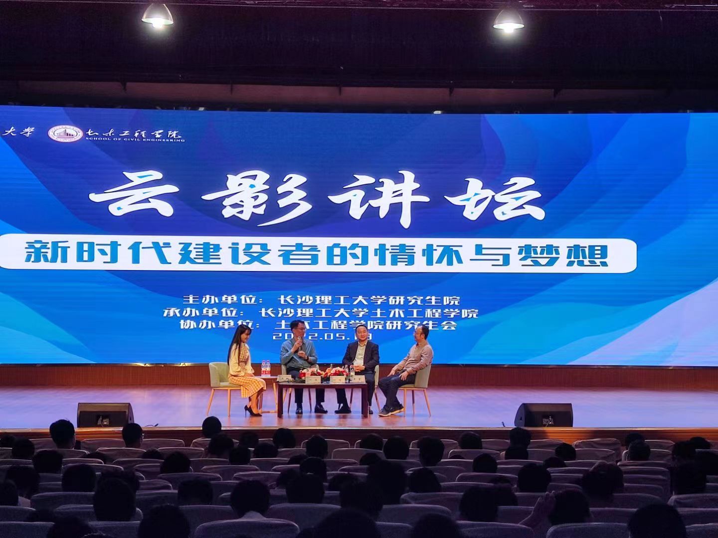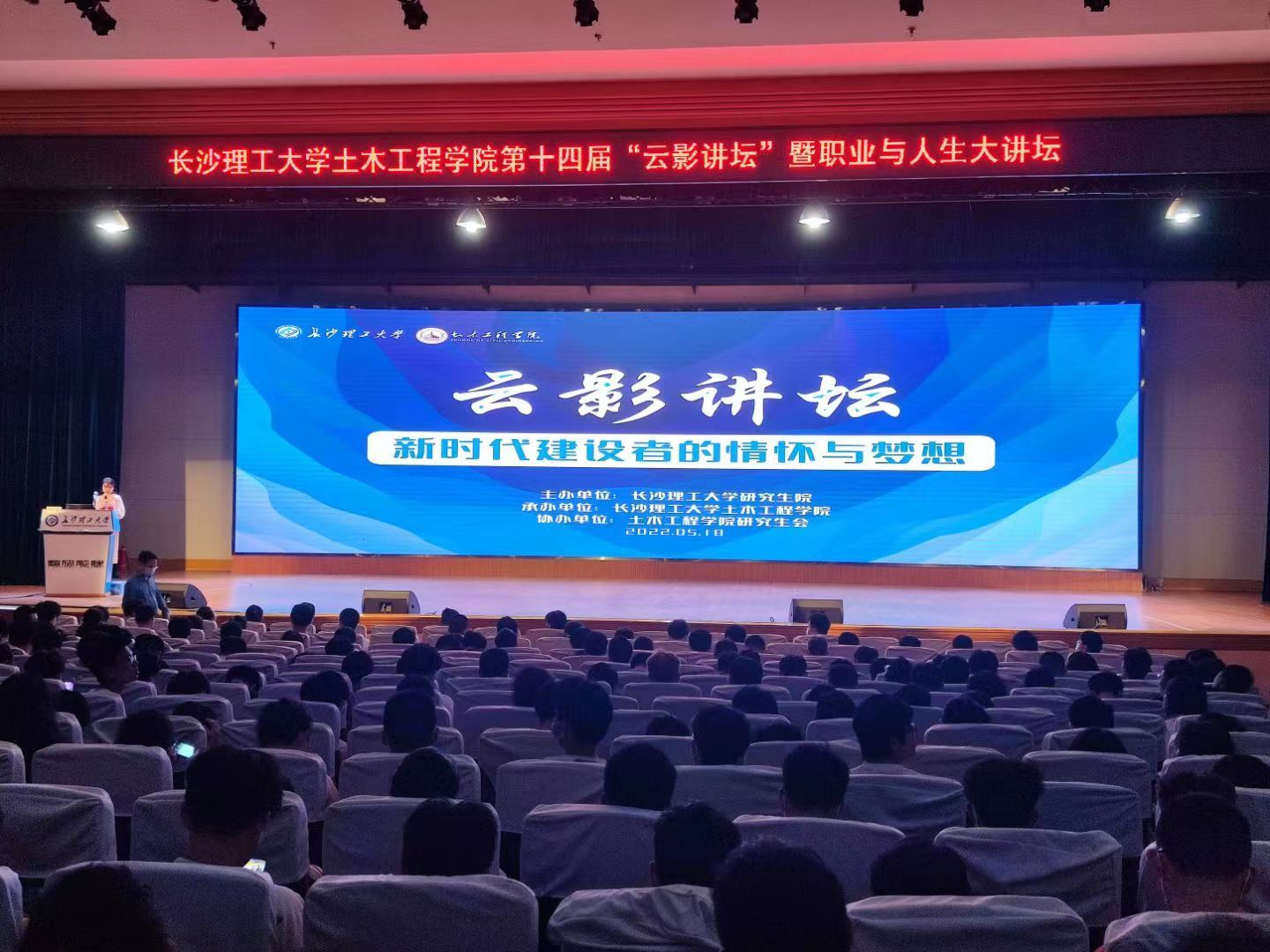 5月18日,土木学院第十四届研究生“云影讲坛”暨职业与人生大讲坛在金盆岭校区五教大礼堂顺利举行。湖南省自然资源监督检测中心/湖南省地质实验测试中心党委副书记、副主任刘准、湖南省建筑设计院路桥所所长蒋望、长沙湘江通用航空发展有限公司常务副总经理刘胜应邀主讲。研究生院副院长兼研工部部长田上老师,学院党委副书记黄阿明老师,学工办李小军老师、邓文杰老师以及全体2021级研究生、本科生参加活动。学工办周媛老师主持活动。
