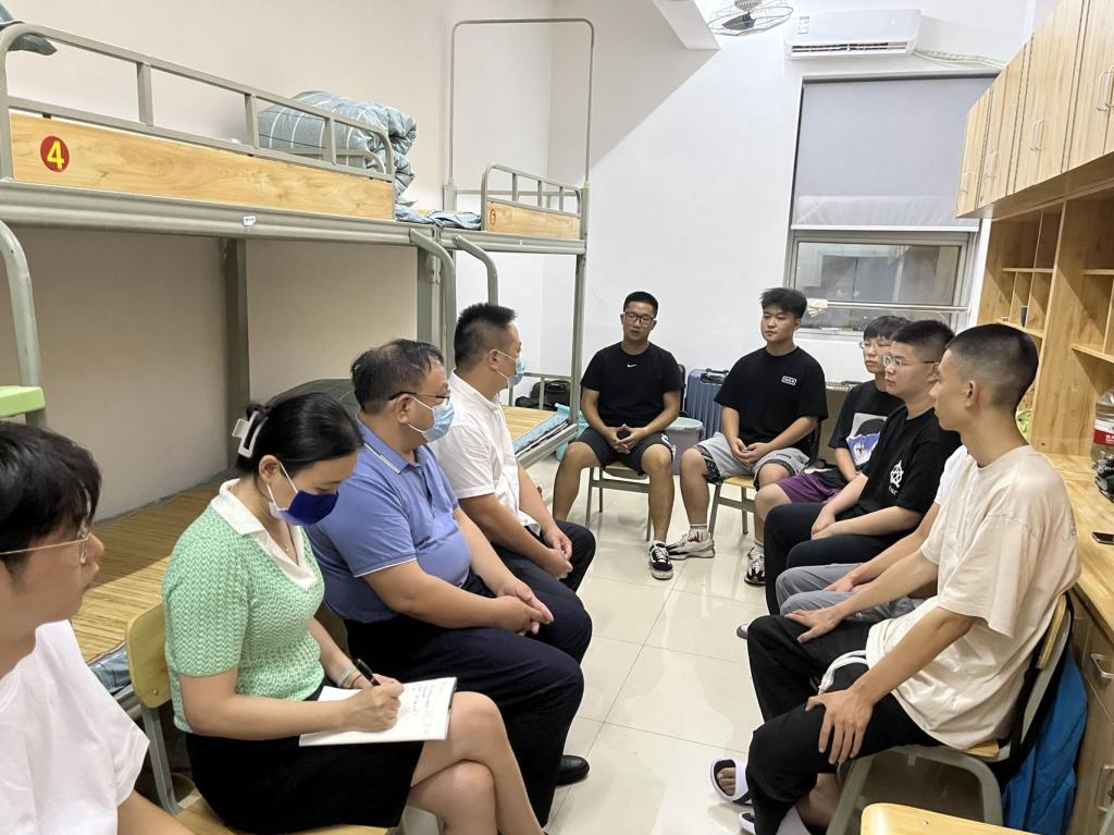 为进一步了解新生所需,帮助同学们尽快融入大学的学习与生活,8月28日晚,材料科学与工程学院党总支书记唐超文、院长毛卫国、党总支副书记陈华、2022级辅导员谭方林以及2022级本科新生代表和研究生代表在学生宿舍16栋A301宿舍举行座谈会。