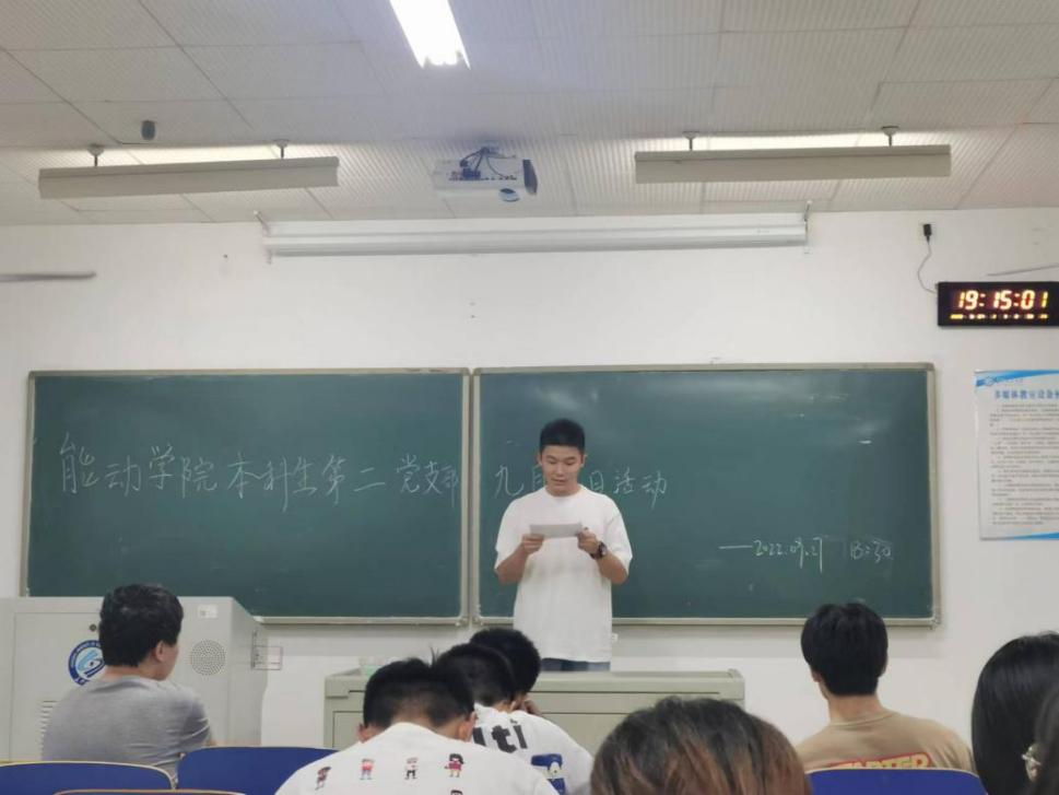 9月27日晚,能源与动力工程学院本科生第二党支部在云塘校区综教C208开展九月份主题党日活动。本科生第二党支部全体党员参与活动。