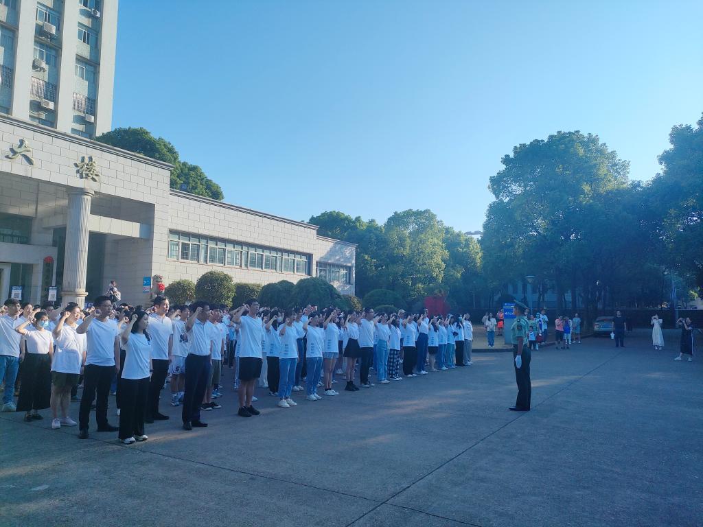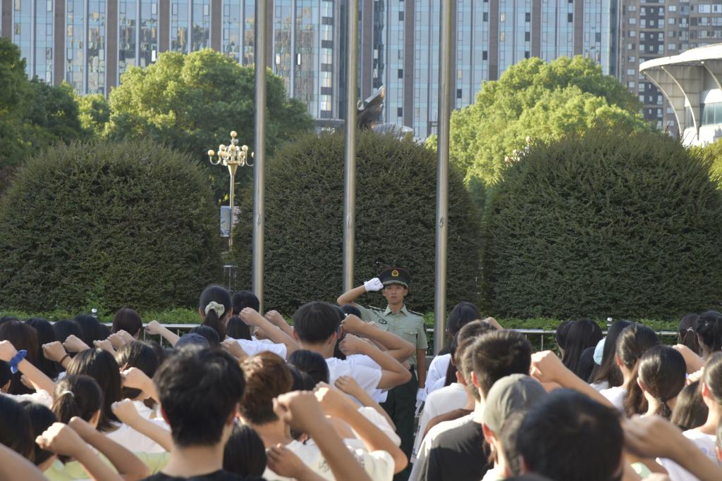 最后,全体师生进行国旗下的宣誓。五星红旗于半空高高飘扬,全体师生右手握拳,郑重宣誓。简洁有力的誓词,铿锵有力的话语,一声声一句句都饱含了全体师生的信心与决心。