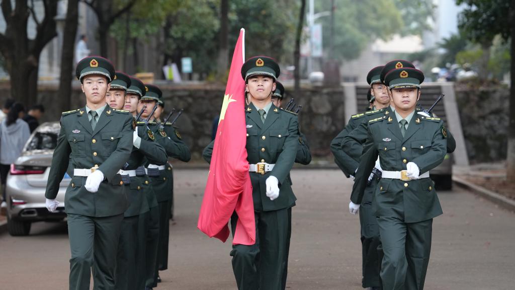 迎着晨光,国旗护卫队护卫着国旗,铿锵前行,在全体师生的注视下,将国旗护送至升旗台前。伴随着嘹亮的国歌声,五星红旗冉冉升起,全体人员面向国旗行注目礼。随后,全体师生在国旗班成员的带领下,面向国旗庄严宣誓,展示水利学子积极向上的精神风貌。
