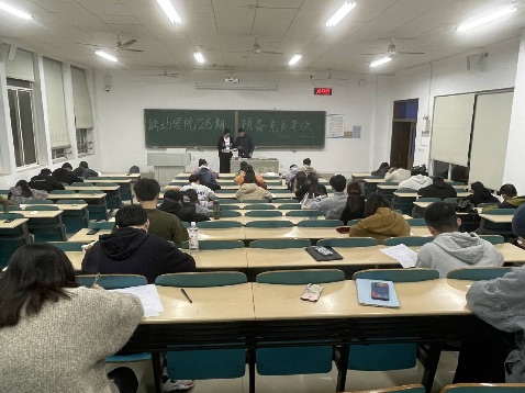 11月23日晚,能源与动力工程学院分党校在云塘校区综合教学楼B205组织预备党员结业考试,学院党建辅导员罗亦欧负责监考工作。