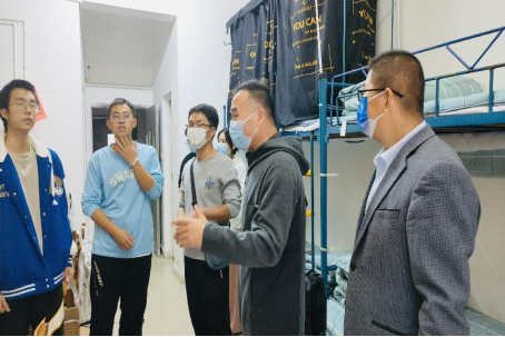 走访过程中,学院领导、班主任和辅导员与同学们亲切交流,叮嘱同学要做好个人防护,佩戴好口罩,养成良好的生活作息习惯;严格遵守疫情防控规定,积极配合做好核酸检测、易班健康打卡等工作;合理安排好学习,加强体育锻炼,保持乐观心态。随后,院领导们深入各自“一对一”帮扶对象--学业困难学生和少数民族学生所在宿舍展开面对面帮扶。老师们走访过程中还检查了宿舍卫生状况,排查消防安全隐患。