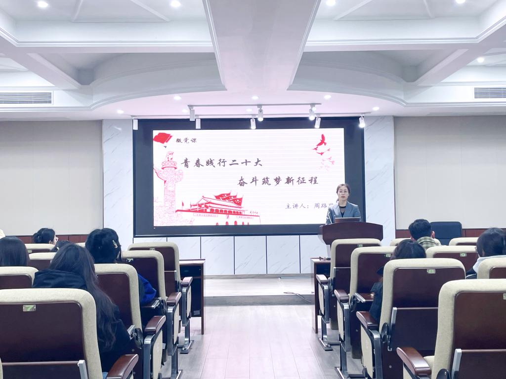 主题党日活动中,周路路为学生党员、发展对象作《青春践行二十大 奋斗筑梦新征程》主题微党课宣讲。周路路从党的二十大报告中关于教育的论述展开,围绕开云官网十年来教育发展的成就,指出学校始终坚持“党办的大学让党放心、人民的大学不负人民”的价值追求。作为一名长理教师她常常被身边的育人榜样激励着,她为同学们分享了湖南省优秀共产党员阳立高教授的“百万助学”的先进事迹。随后,她以我院2名退役士兵张梁和郭子瑜从“士兵突击”到“考研学霸”的青春奋斗逆袭故事为例,勉励全体同学做有思想力、有思考力、有行动力的大学生,发扬长理经管人的勇毅与担当!
