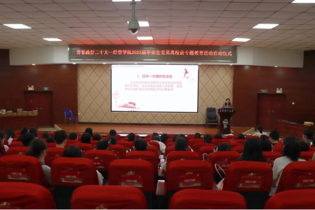 主题党日活动中,正式启动毕业生党员离校前专题教育活动。何艳芝宣读了《经管学院2023届毕业生党员离校前专题学习教育活动方案》,强调了主题教育活动的注意事项及要求。最后,叶鑫讲解了毕业生党员组织关系转接事宜及注意事项,对党组织关系转接的具体流程和相关要求进行了强调。