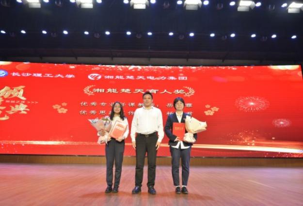 在颁奖环节,2名优秀教师、18个优秀团队及23名优秀学生获湘能楚天奖教奖学金,4名同学获国家奖学金,3名同学获特高压奖学金。获奖教师代表岳雨霏和学生代表梁晨先后发表获奖感言。