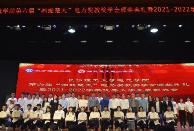 6月6日晚,电气与信息工程学院在金盆岭校区五教大会堂举行第六届“湘能楚天”电力奖教奖学金颁奖典礼暨2021-2022学年优秀学生表彰大会。湘能楚天电力集团董事长陈伟其、副总裁冯艳云、薪酬经理张立奇、品宣经理朱雷,开云官网教务处副处长彭晖、学工部副部长陶传谱、校友中心副主任肖晖、研工部思政科科长吕倩出席,电气学院党政领导班子、师生代表一同参与。本次颁奖典礼由电气学院党委副书记陶双主持。