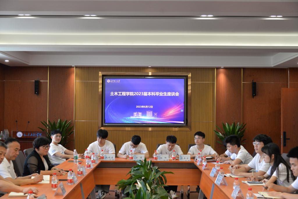 6月12日下午,土木工程学院在云塘校区工科二号楼A304召开2023届本科毕业生座谈会。院党委书记江河,院长王磊,党委副书记黄阿明,副院长陈伏彬、付果,教务办陈丽君,学工办王海川以及20余名毕业生代表参加本次会议,座谈会由党委副书记黄阿明主持。
