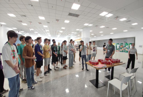 在EHS部门经理赵云华先生的带领下,同学们先后参观了解了舍弗勒湘潭“未来工厂”,赵经理对厂区的整体情况进行了介绍,并且向大家讲解了离合器、双质量飞轮、热管理模块等产品,带领大家进入生产车间,让大家实地感受舍弗勒湘潭“未来工厂”的多品种加工、自动化、智能化生产线。随后在葛经理的带领下共同打卡员工活动中心,到员工食堂就餐,进行“沉浸式”体验。