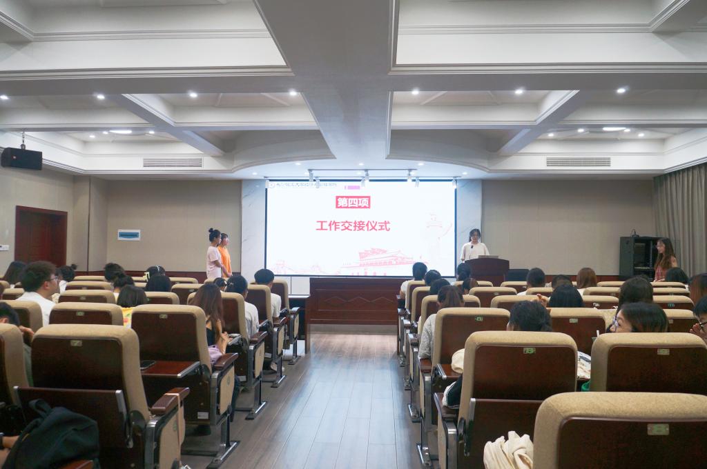 在工作总结环节,六个小组分别回顾过去一学年的工作内容和工作状态,对工作进行总结反思,并阐述了未来的整体规划。随后,党建工作组新成员进行了自我介绍,同时播放祝福视频,表达了对即将换届的学长学姐们的美好祝愿。