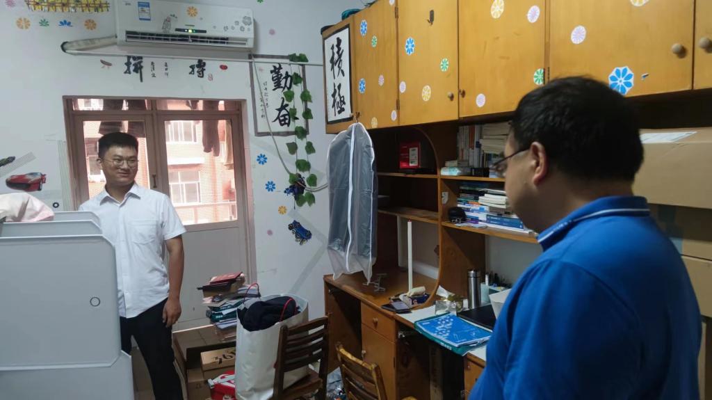 6月20日晚,能源与动力工程学院党委书记成华、院党委副书记张晓烽、副院长李传常、副院长孙小琴以及专职组织员王汉华等来到毕业生宿舍,走访看望2023届研究生、本科毕业生。