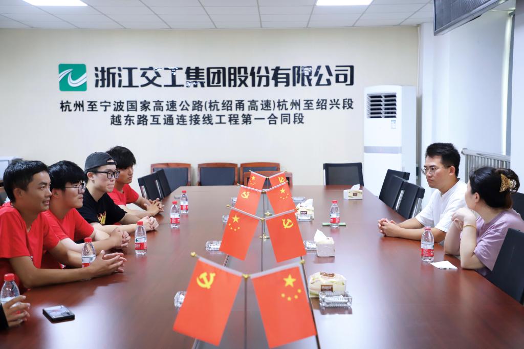8月6日,交通学院“红色使者下基层”实践团前往“杭绍甬高速杭州至绍兴段越东路互通连接线工程第一合同段”项目部,深入了解工程项目基层的发展情况,感受交通强国建设带来的发展成就变化,为国家交通强国建设奉献青春力量。