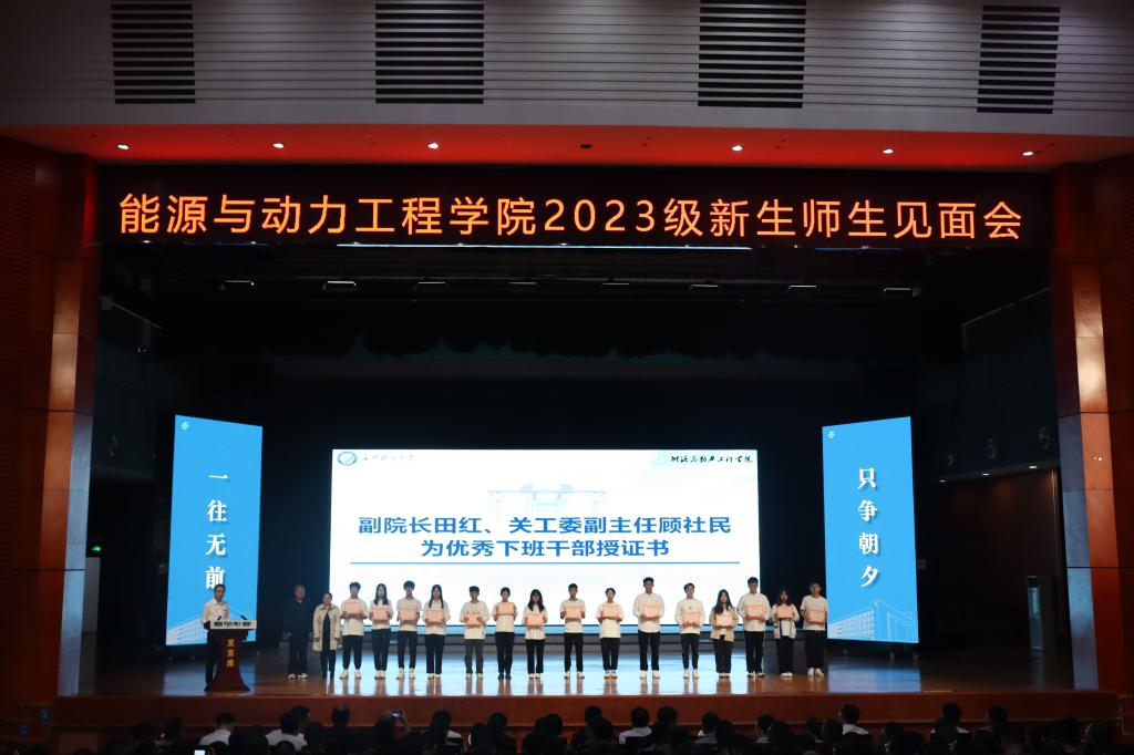 10月13日晚,能源与动力工程学院2023级新生见面会在云塘校区大会堂举行,学院全体院领导、关工委副主任顾社民、各系主任、全体新生班主任、全体学工辅导员及2023级全体本科生新生参会,活动以线上直播的形式邀请全体新生家长参会,共收获逾9900人在线观看。活动由学院党委副书记兼副院长张晓烽主持。