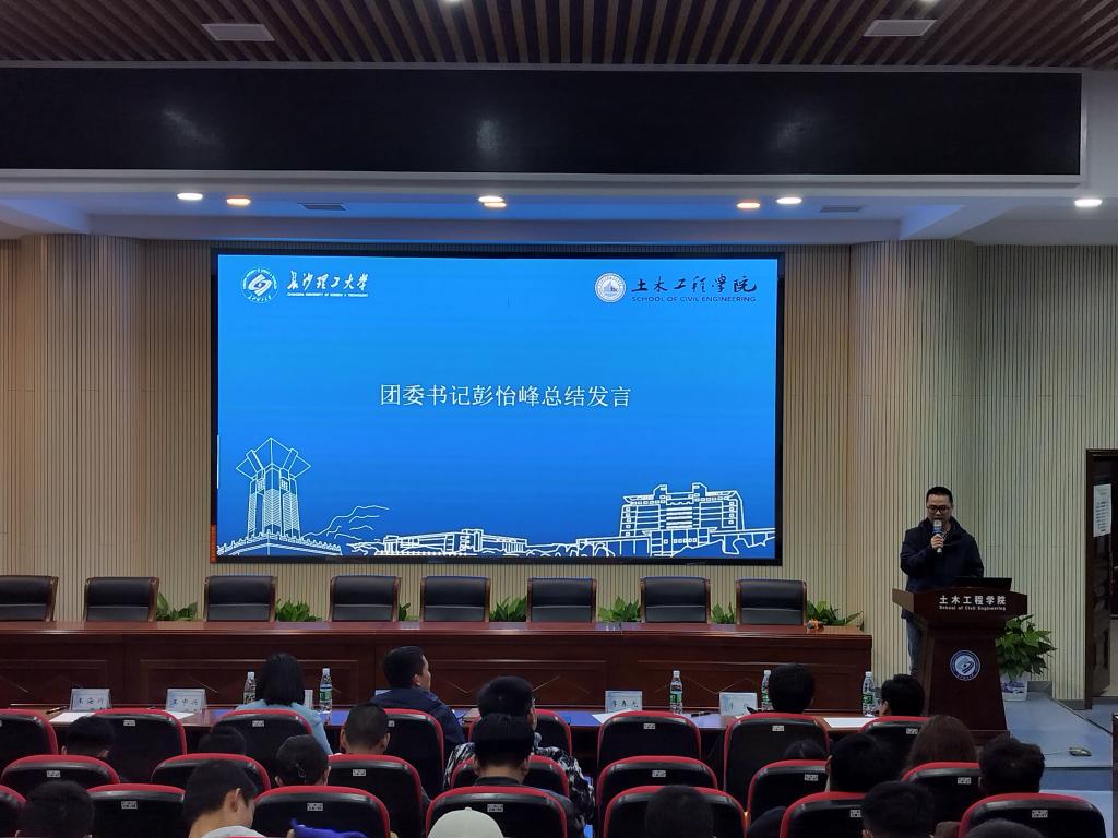 会议最后,分团委书记彭怡峰对大会作总结发言。首先,他对各团队的汇报质量予以肯定,并强调同学们在投身社会实践的过程当中,不但涵养了自身吃苦耐劳的优良品格,而且为我国乡村振兴事业注入长理力量。同时,他还指出本次活动在参与人数、调研内容、实践特色等方面存在的不足,建议在社会实践中融入学院特色和专业特色,更好地服务当地经济文化发展。最后,他呼吁更多同学踊跃参与“三下乡”实践活动,传承红色基因,磨砺奋斗底色,将个人的发展融入国家和民族的历史脉络当中,争做富有工科素养兼具人文情怀的长理土木青年。