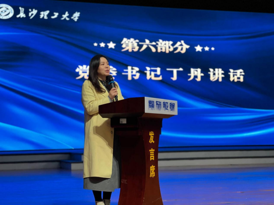 在对学业优秀个人、优秀学生干部、“学霸笔记”获得者进行表彰后,楚艳鸽以今年在极端天气中昼夜奋战在一线,踏雪破冰保供电的电力工作者为例子,向全体学生分享了奉献、担当的红色电力精神,鼓励同学们要追高人生理想,投身强国伟业。