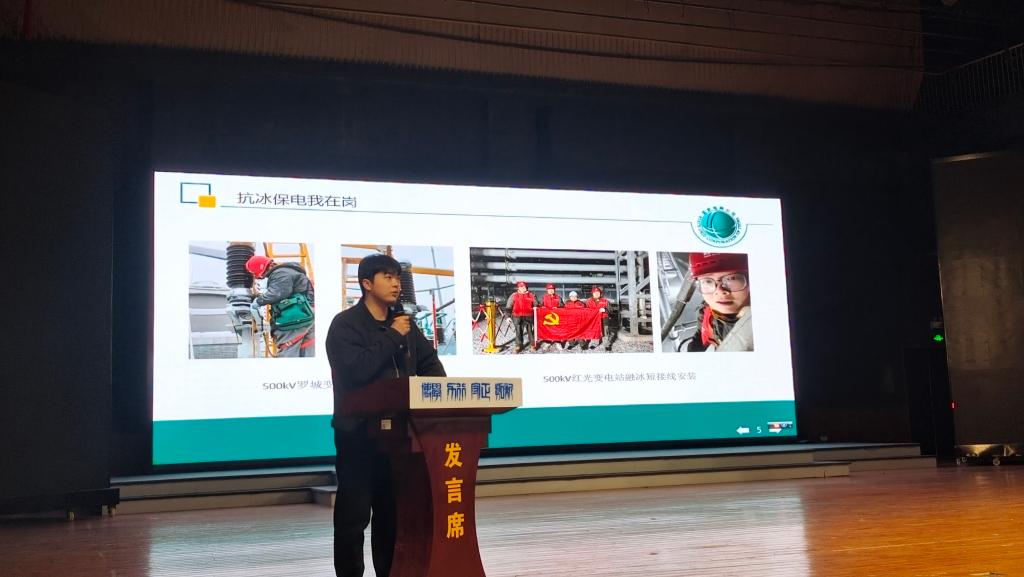 会议第二项田孟萍对全年级学生的学情情况进行了全面分析,她首先通报了各专业平均绩点、各班挂科率等学情分析数据,对进步名次较大的同学进行了通报表扬。随后2020级签约国电郴州公司的张艳菊、2021级考研华北电力大学排名第7的高分考生王钰清围绕考研与就业的选择、考研高分攻略分别讲述了各自的经验与心得,为2021级师弟师妹们提供了宝贵意见和建议。接着国网湖南超高压变电公司2023届校友夏书林深情讲述了自己作为一线电力工作者,在今年春节期间抗冰保电的难忘经历,面对严寒和冰冻,他们闻令而动,毫不退缩,始终坚守岗位,用实际行动诠释了电力人的责任与担当,为同学们上了一堂生动、鲜活的大思政课。
