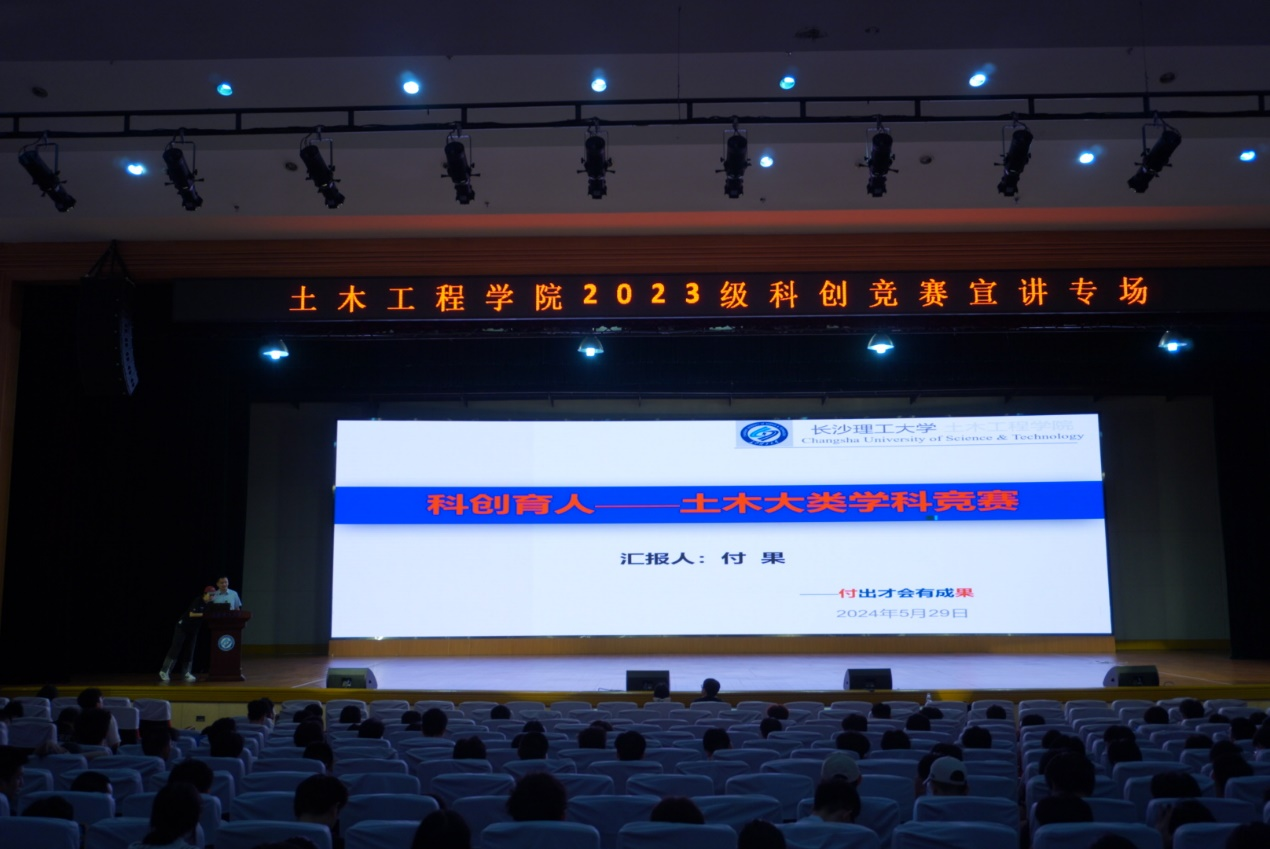 为全方位提升学生科学创新素养,培养具有创新精神和创业意识的优秀人才,5月29日晚,土木工程学院于金盆岭校区5教大礼堂举办2023级科创竞赛宣讲专场,土木工程学院副院长付果主讲,土木学院2023级辅导员王海川和2023级全体学生参加,讲座由土木工程学院2023级辅导员黄娟主持。