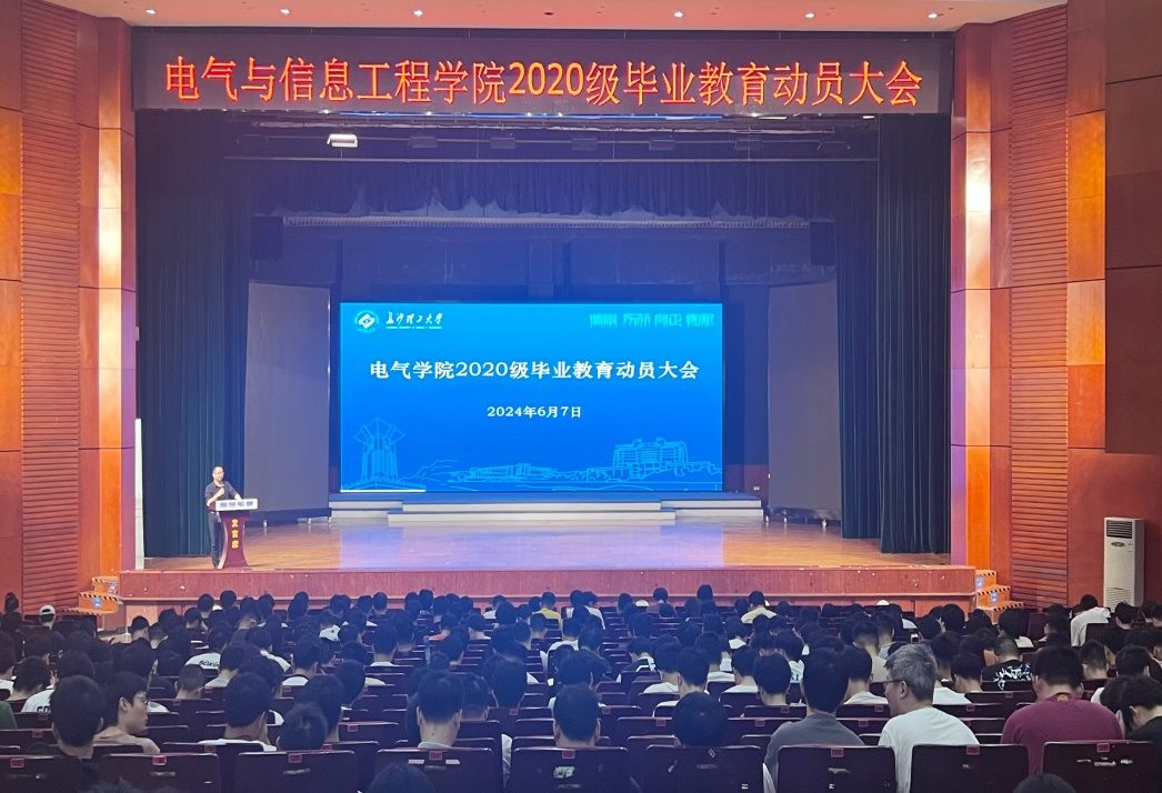 为进一步做好毕业生离校前各项工作,教育引导毕业生文明离校,激发毕业生成才报国之志、爱校荣校之情和奉献感恩之心,6月7日,电气学院于云塘大会堂召开2020级毕业生教育动员大会。学院党委副书记周巍,2020级辅导员杨宸君、2023级辅导员周珍及2020级全体毕业生参加。会议由学院就业指导中心主任欧彩玲主持。