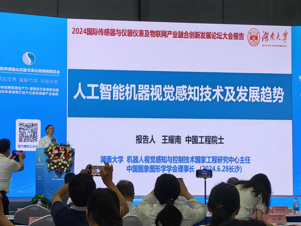 开幕式上,中国工程院院士王耀南作了题目为《人工智能机器视觉感知技术及发展趋势》的报告,具体讲解了机器视觉在生物医学、精密测量,尤其在电子、汽车工业零件生产等方面的重要作用;工信部赛迪研究院物联网中心主任韩允作了主题为《新质生产力背景下传感器产业的几点思考》的交流,介绍了传感器在汽车电子、智慧城市、智能制造以及新能源等方面的具体应用和现实意义。