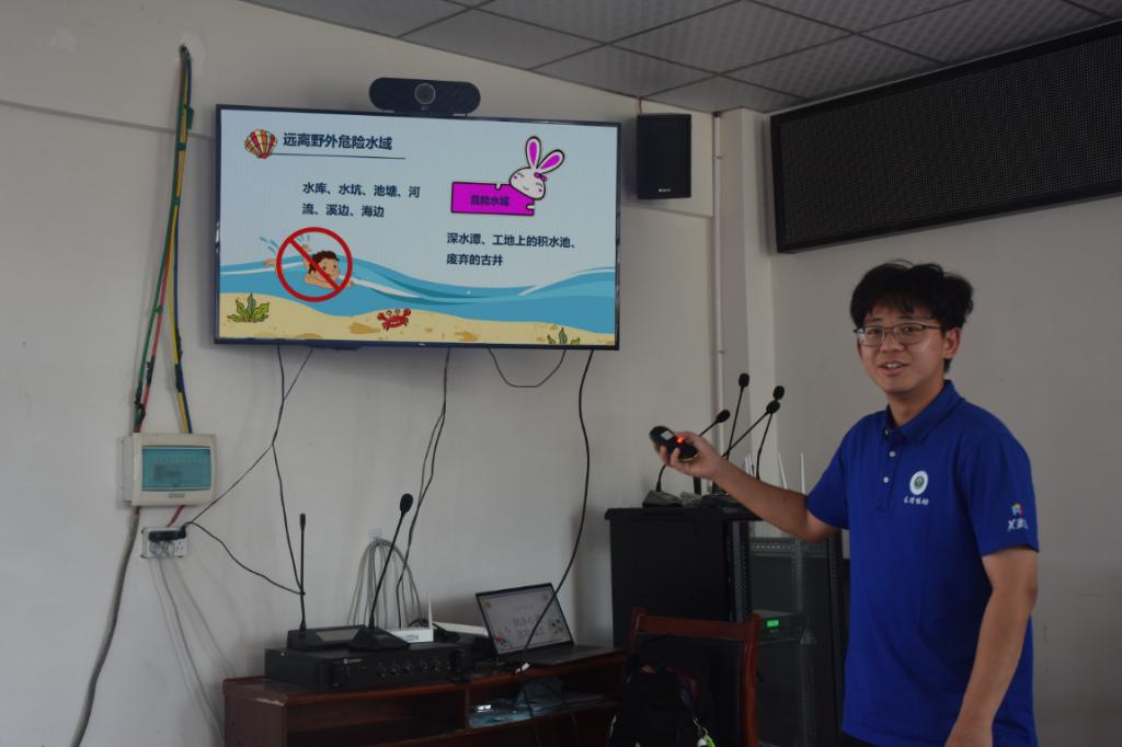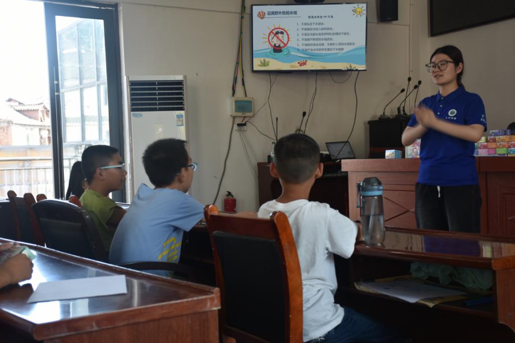 “时下正值盛夏,村中许多小朋友会去水边玩耍,因意外跌入水中的情况时有发生,为了让大家更加了解如何预防意外和保护自己,我们觉得有必要进行这次防溺水安全教育活动。”团队指导教师彭博谈道。团队成员通过生动的案例和互动游戏,向孩子们讲解了水边玩耍的注意事项及预防措施,并播放了一段关于防溺水警示的短片,孩子们都认真观看。